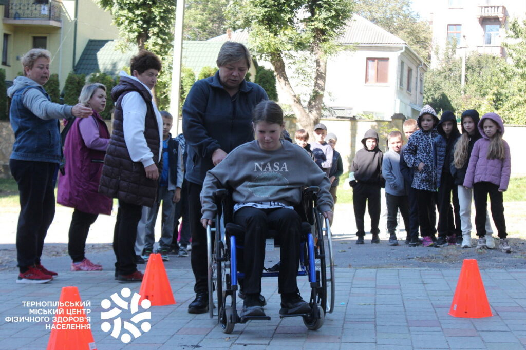 26 вересня на спортивному майданчику школи діти мали нагоду відчути на власному досвіді, що означає жити з обмеженими можливостями. Учасники спробували пересуватися у кріслі колісному, виконували вправи із зав’язаними очима, долали символічну “смугу перешкод” та вчилися ходити на милицях.