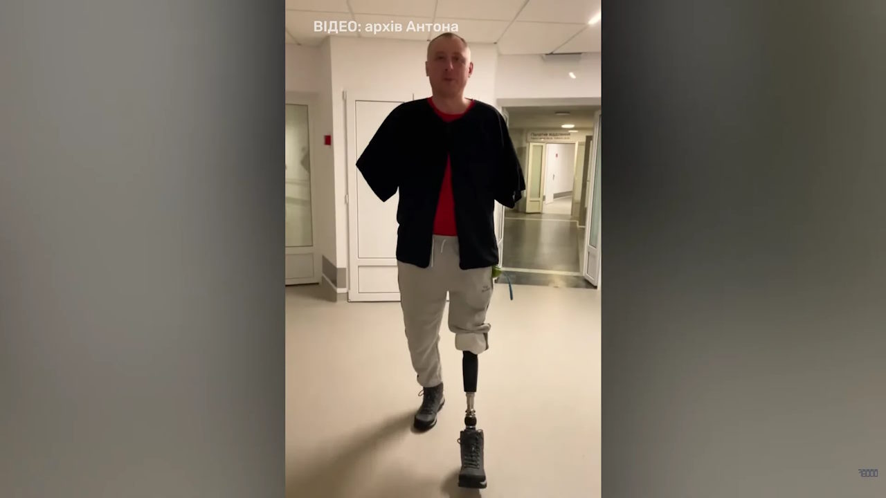 Антон Іванців випробовує протез. Скрин із архівного відео героя