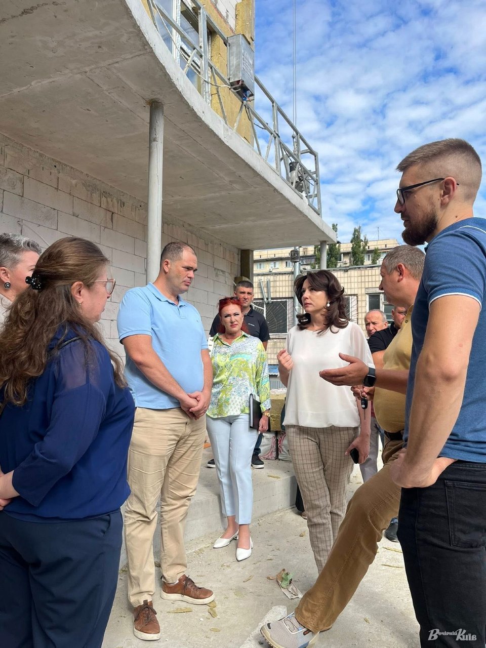 У Святошинському районі тривають роботи з реконструкції будівлі на вул. Якуба Коласа, 8-А, де створюють Центр комплексної реабілітації дітей та молоді з інвалідністю. Серпень, 2025 р. Фото: Борис Корпусенко