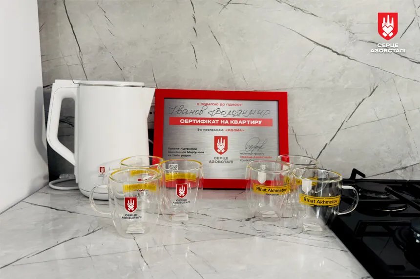 Ключі від квартири родині передала директорка ГО «Серце Азовсталі» Ксенія Сухова від імені засновника проєкту Ріната Ахметова. Із новосіллям родину також привітала голова наглядової ради Фонду Ріната Ахметова та ГО «Серце Азовсталі» Наталія Ємченко, яка передала символічний подарунок — кавомашину.
