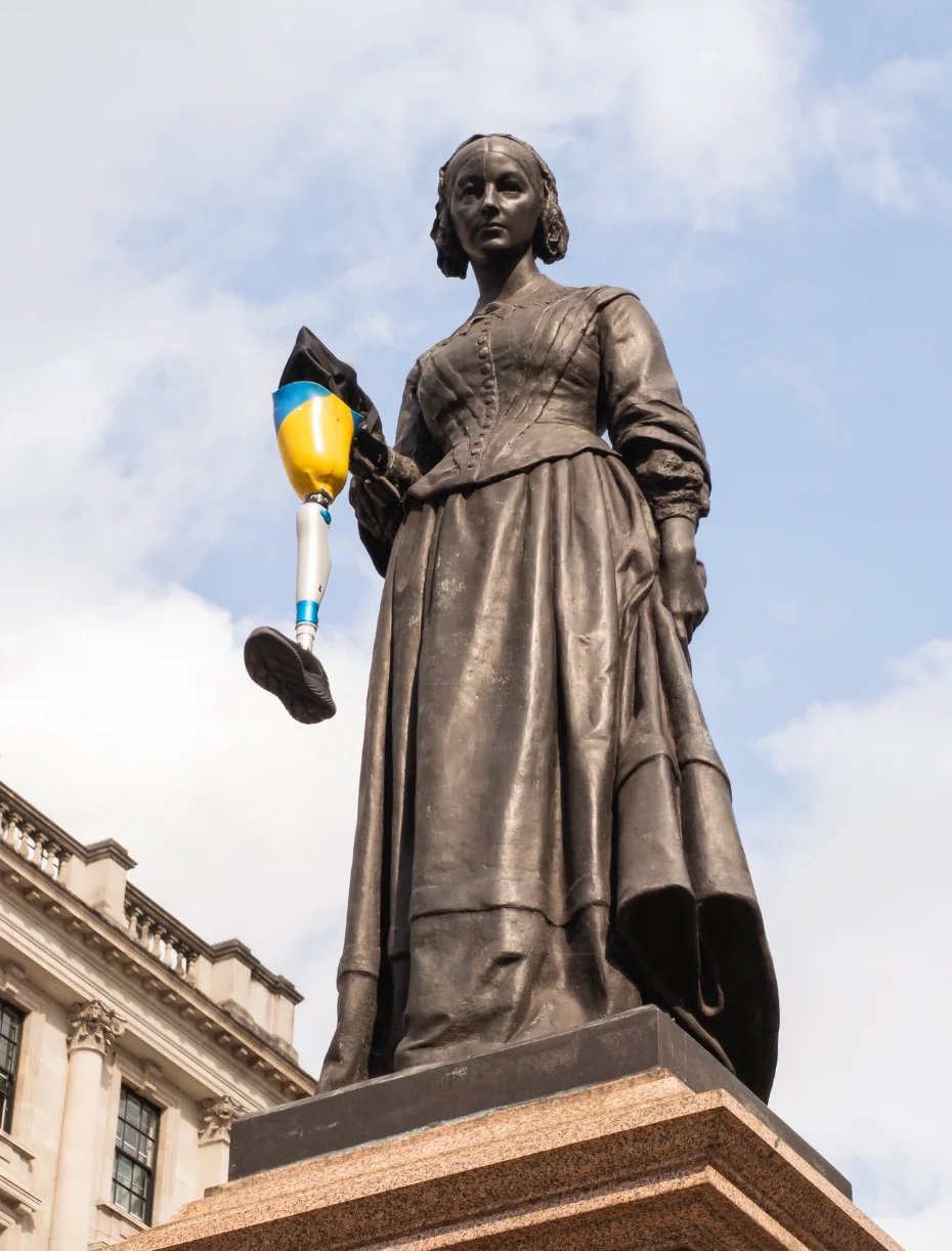 Нагадування про військових з ампутаціям. У Лондоні до руки статуї медсестри Флоренс Найтінгейл прикріпили протез в кольорах прапору України (ФОТО)