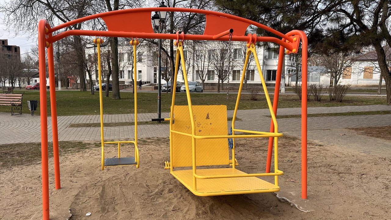 “Наприклад, ця пісочниця має доступний рівень для дітей на візках, а звичайні діти можуть гратися на іншому ярусі. Також є карусель (і гойдалка — ред.), розраховані для дітей на візках”, — сказала Юрченко.