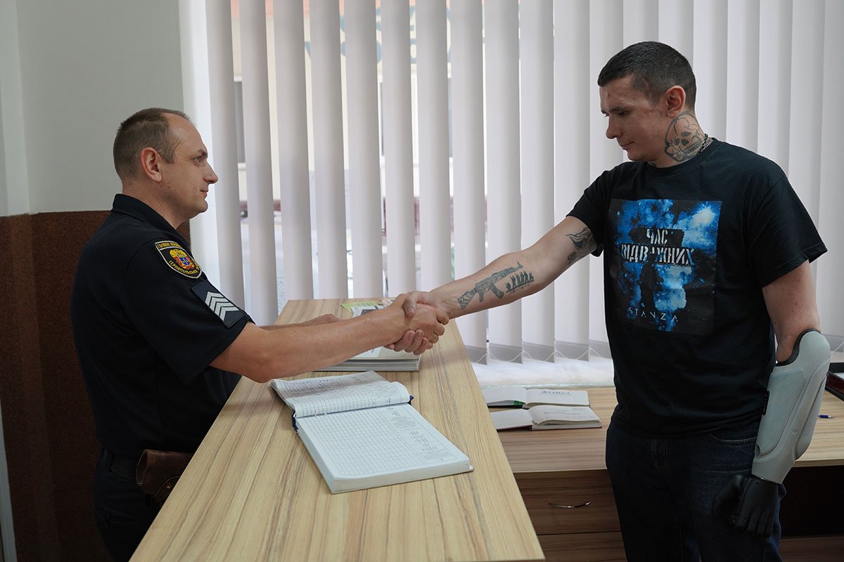 «На війні я з 2020 року. Пішов служити за контрактом. Під час виконання бойового завдання на Луганщині у січні 2024 року отримав важке поранення — втратив руку та око. Коли мені запропонували роботу в поліції, я одразу погодився, бо хочу бути корисним», — розповідає Андрій.