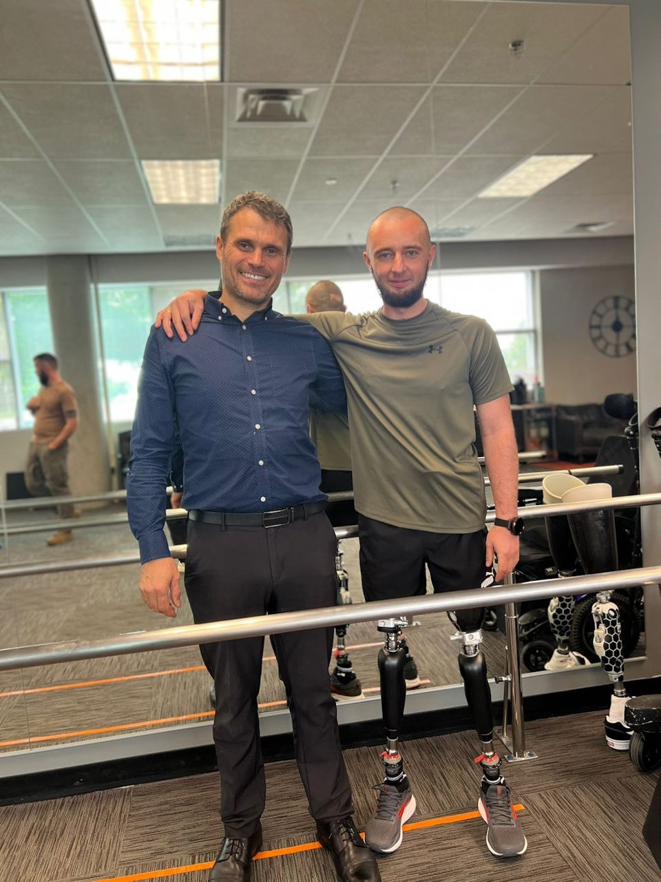 “Сходи дуже тяжко даються з подвійною ампутацією. Там свої моменти, свої налаштування у цих колін, жорсткість. І має бути сильна кукса, щоб витягнути себе наверх, перемістити всю свою вагу на сходину. Потихеньку працюємо над цим. Складно, але реально”, — говорить військовий.