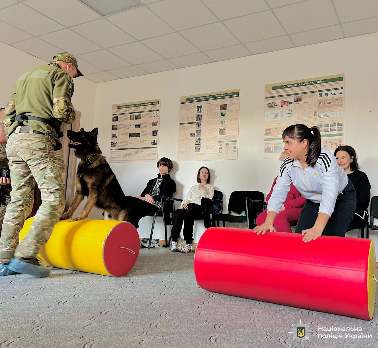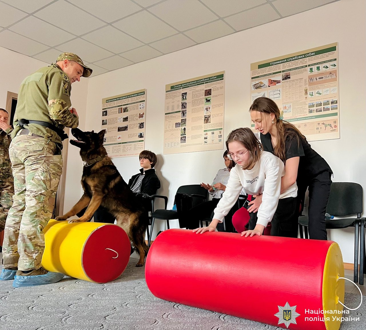 Юні учасники виконували вправи на тактильний контакт, рухові ігри та елементи командної взаємодії зі службовими собаками. Усі заняття проходили під наглядом кінологів і фахівців, що сприяло відкритості, спокою та позитивним емоціям дітей.