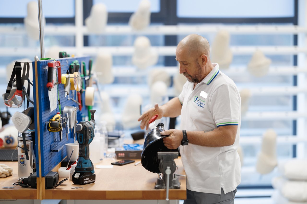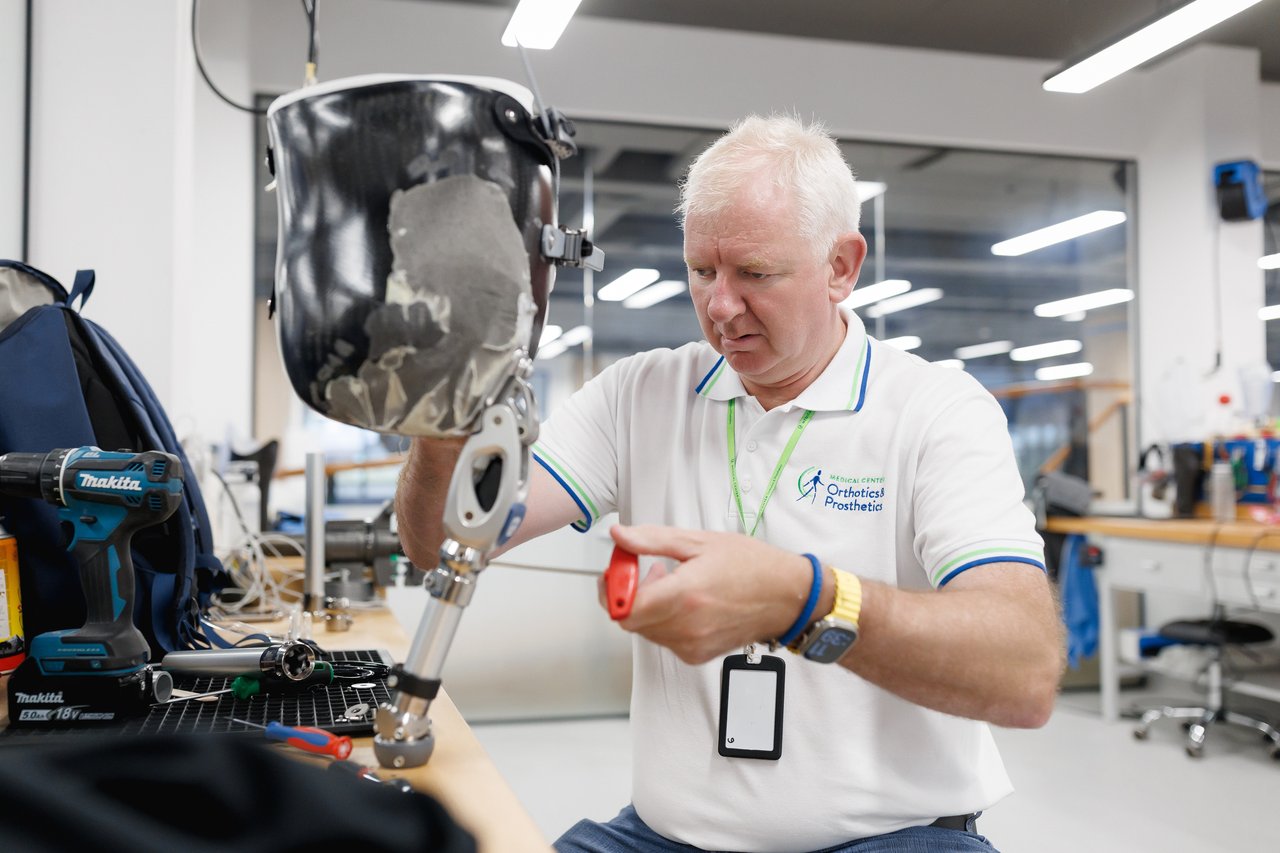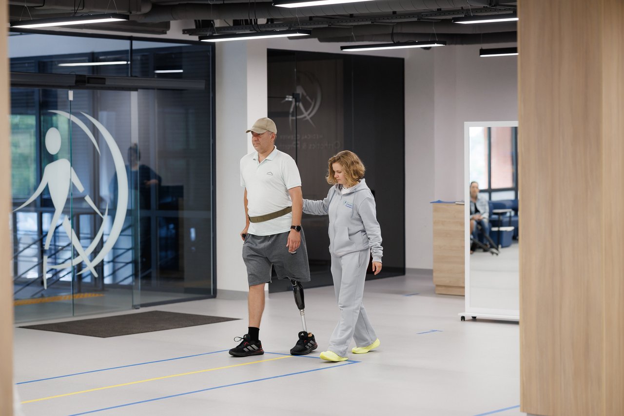 Протезист та фізичний терапевт працюють в парі, що дозволяє вчасно коригувати протез для максимального комфорту пацієнта. Вже за кілька днів після зняття мірок та виготовлення протеза людина робить перші кроки — фізіологічно правильно та мінімізуючи ризики травмуватися.